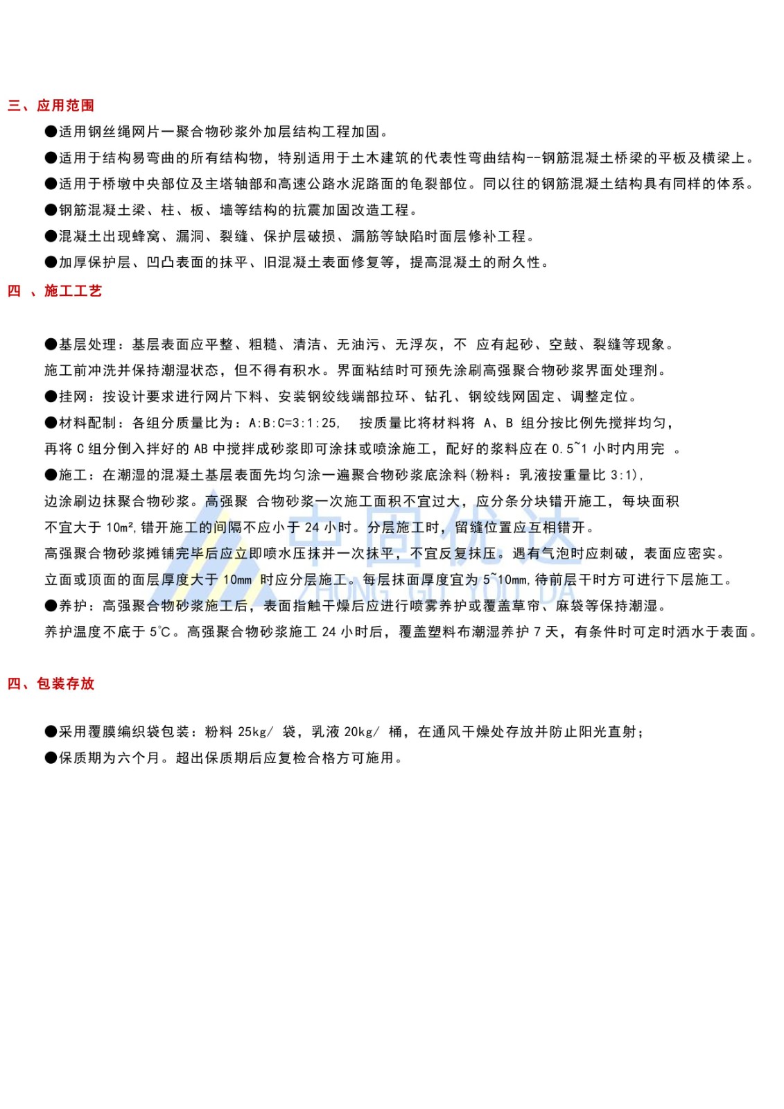 聚合物砂浆适用于混凝土结构的空洞、蜂窝、破损、风华、剥落、露筋、碳化等